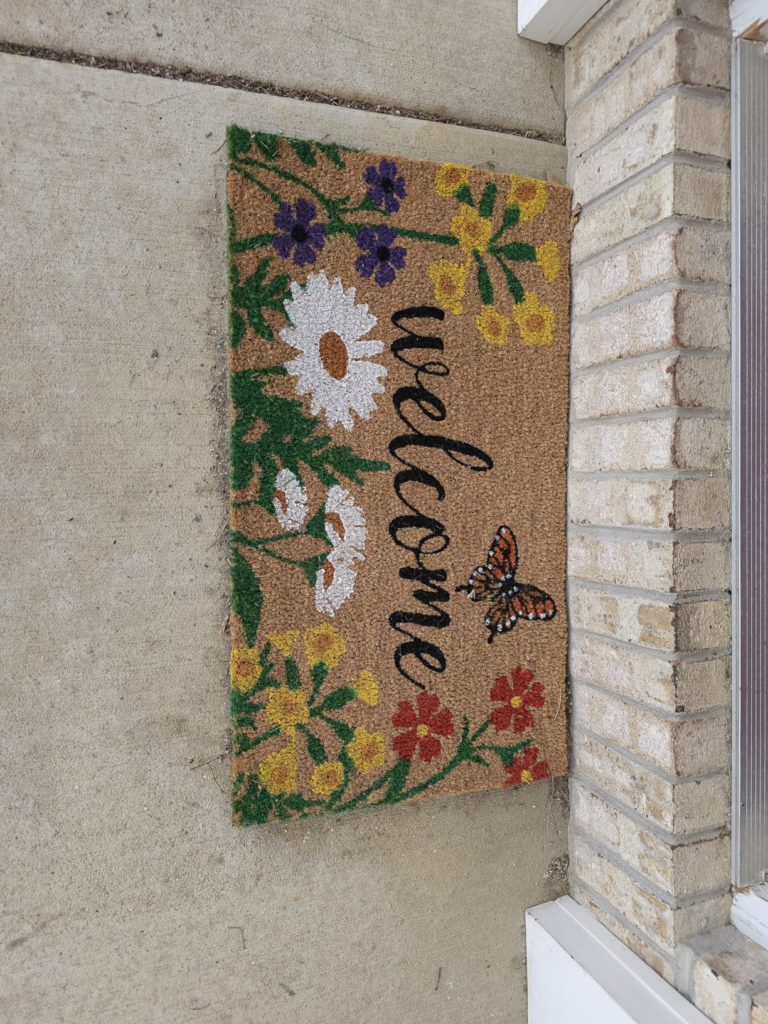 - Swap out a dark or winter-themed doormat for a lighter, spring-inspired one