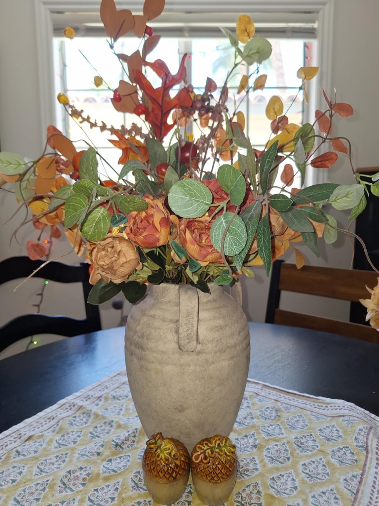 Fresh flowers instantly brighten a space and create a cheerful atmosphere. If fresh flowers aren’t practical, high-quality faux florals work beautifully too.