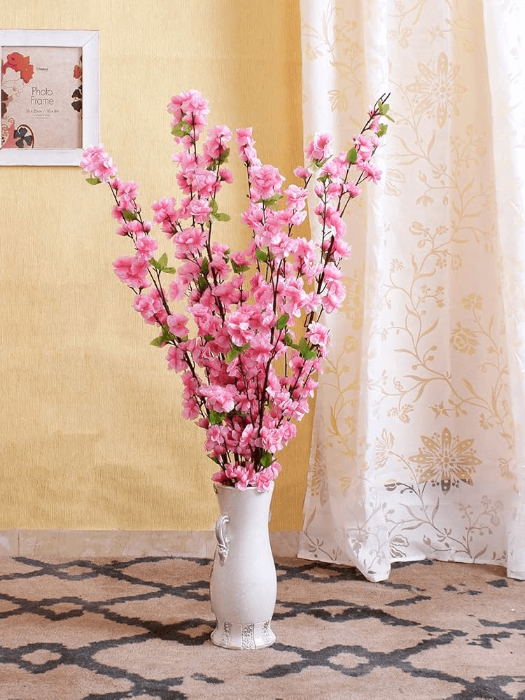 - Style eucalyptus, olive, or faux cherry blossom branches in a tall vase
