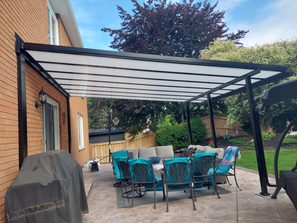 Unlike solid roofs, polycarbonate panels allow natural light to filter through while protecting your patio from rain, harsh sunlight, and UV rays.