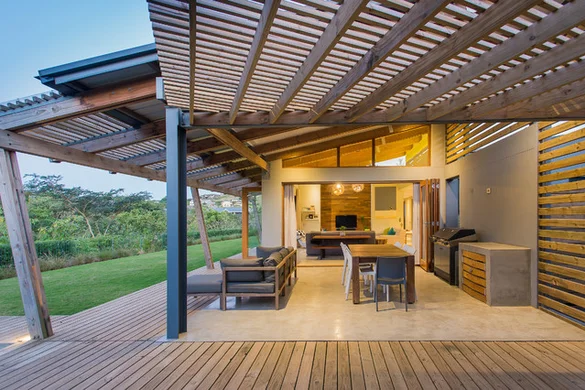 This Covered Wooden Roof Patio Pattern Design By LevEco Architects