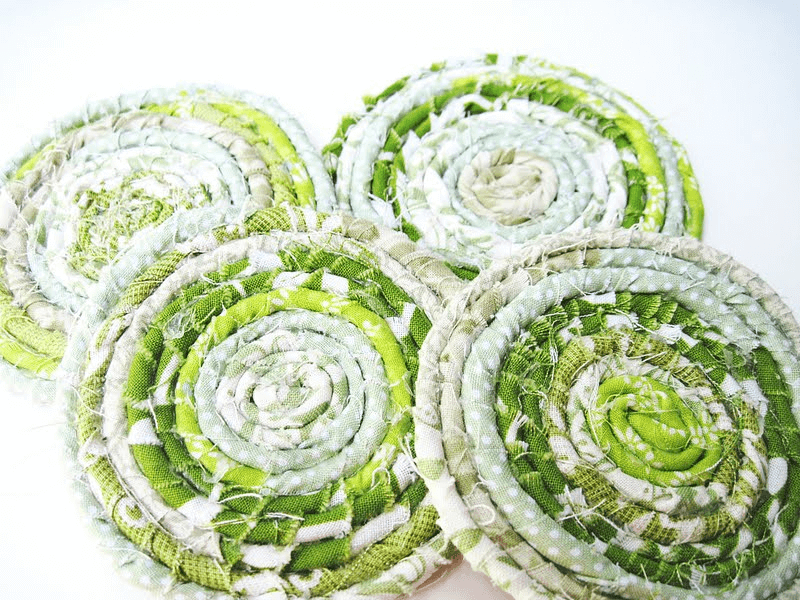 Cut fabric into circles or squares and glue layers together. These coasters are quick, useful, and don’t require sewing skills. We Take Inspiration To Make This From Twoshadesofpink