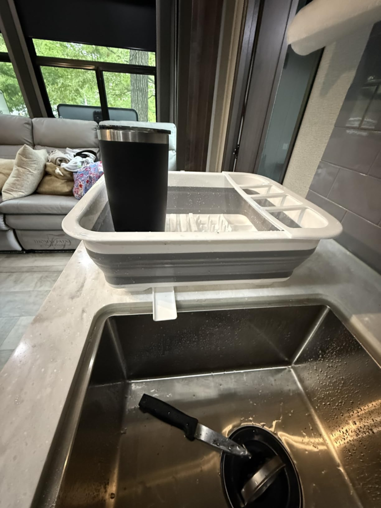 The outdoors were perfect. But inside the RV? Shoes piled near the door, snacks rolling around the floor, and that one cabinet that always opens when you don’t want it to.