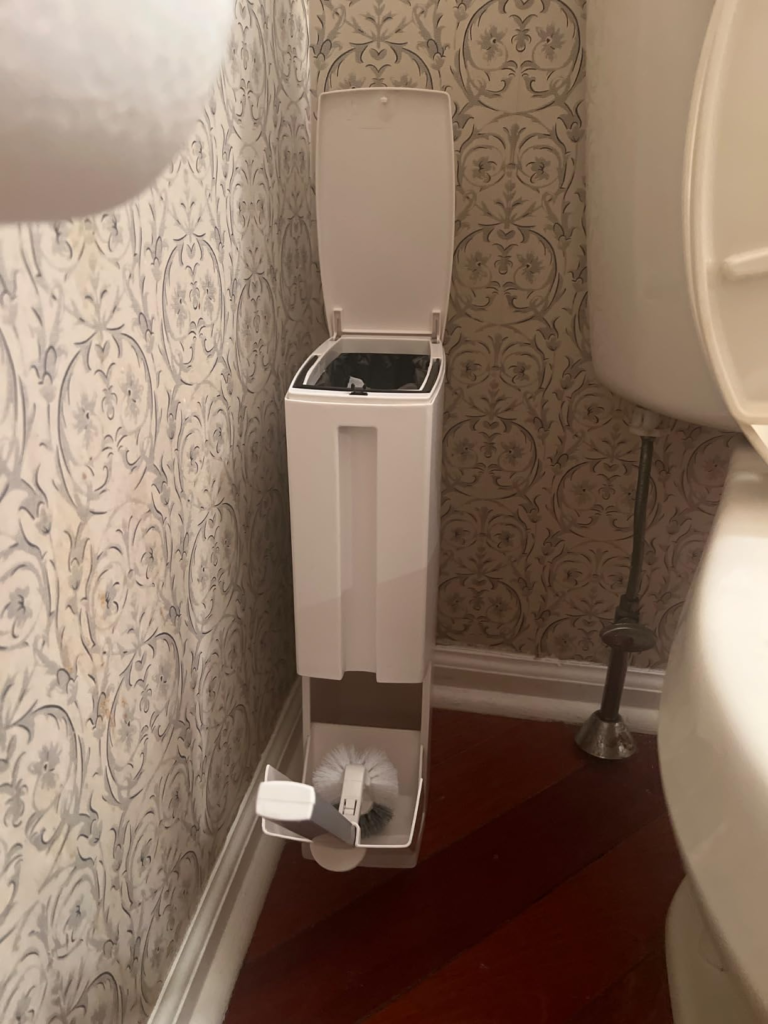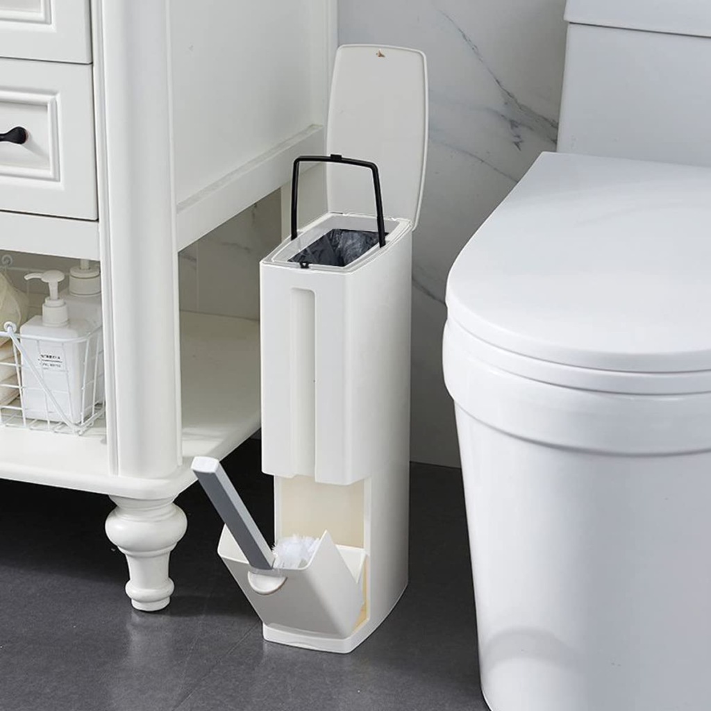 Small Narrow Lidded Bathroom Trash Can with Toilet Brush for RV Camper>>>