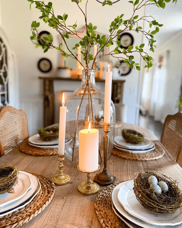 A simple plant or flower arrangement can turn an everyday table into a spring centerpiece.