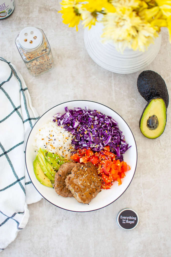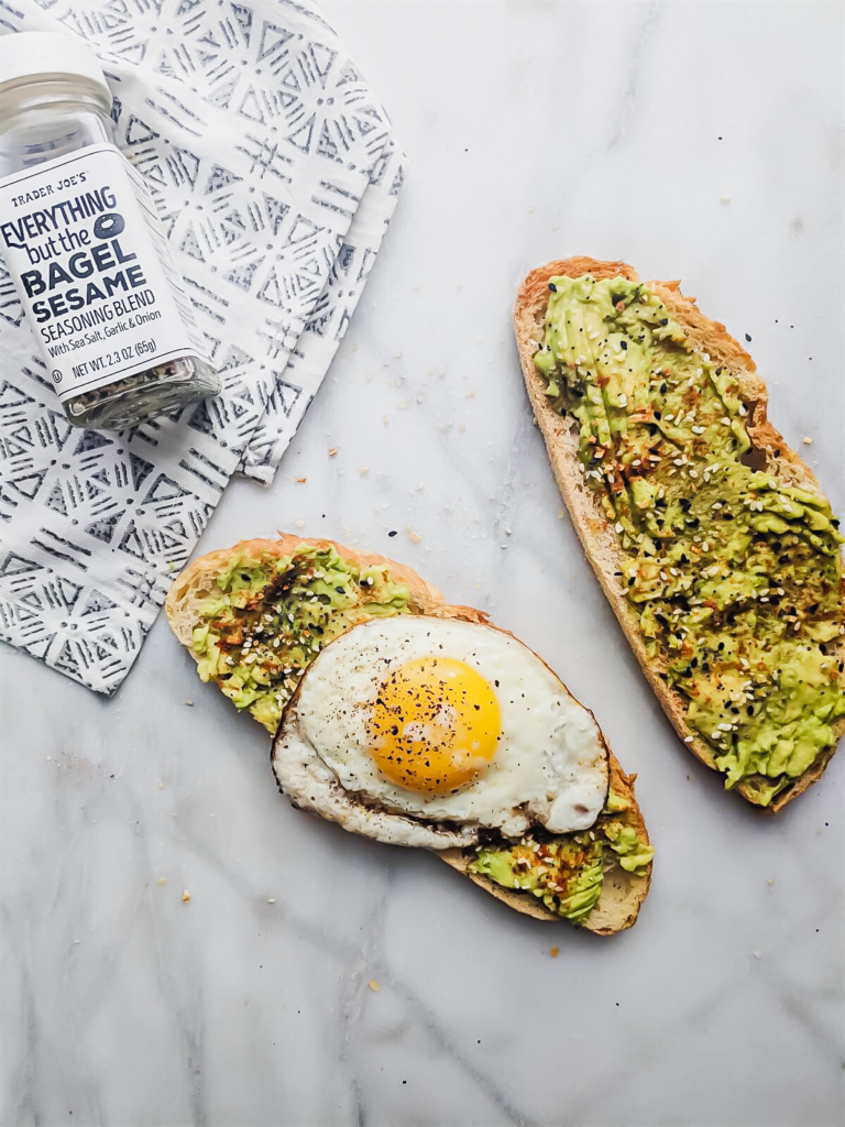 Place on top of the avocado. Sprinkle generously with everything bagel seasoning — the sesame seeds add additional tryptophan.