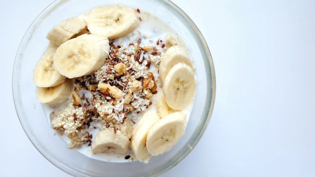 Stir in 1 tbsp ground flaxseed, 1 tsp maple syrup, and a pinch of cinnamon.