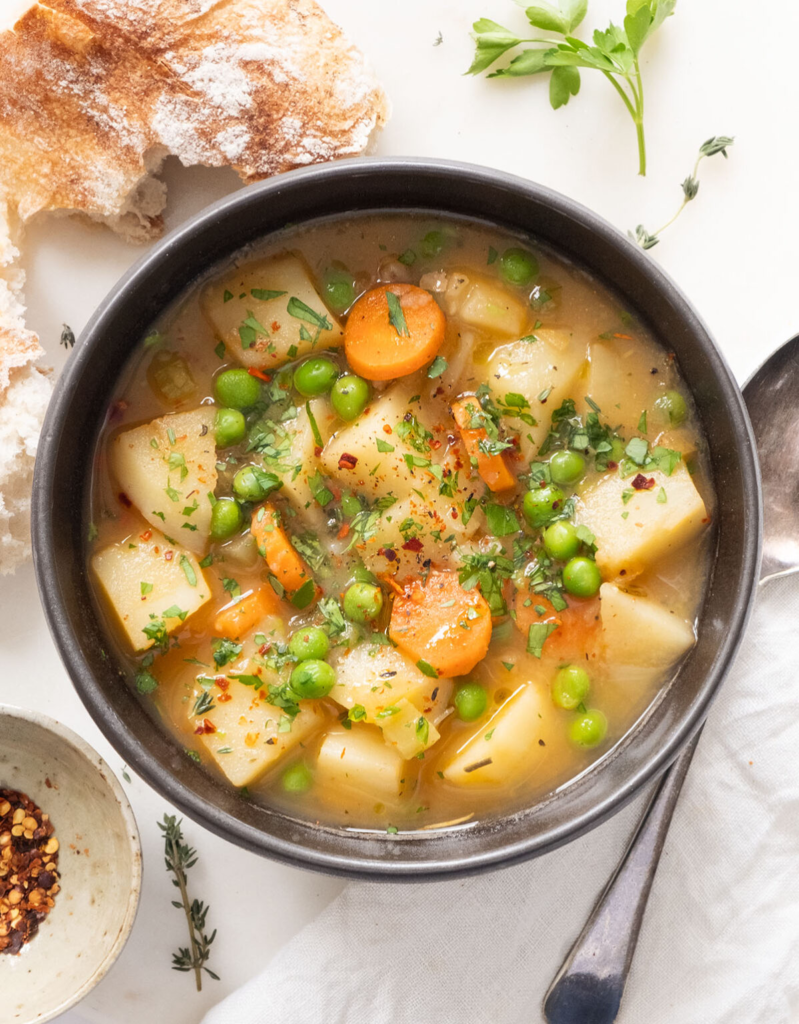 Sauté onion, carrot, and celery in olive oil until soft, then add garlic, herbs, and broth. Add dry pasta directly to the pot and let it cook in the broth, then stir in quick-cooking veggies like spinach or zucchini. Finish with herbs or a drizzle of oil (optional) and serve warm.