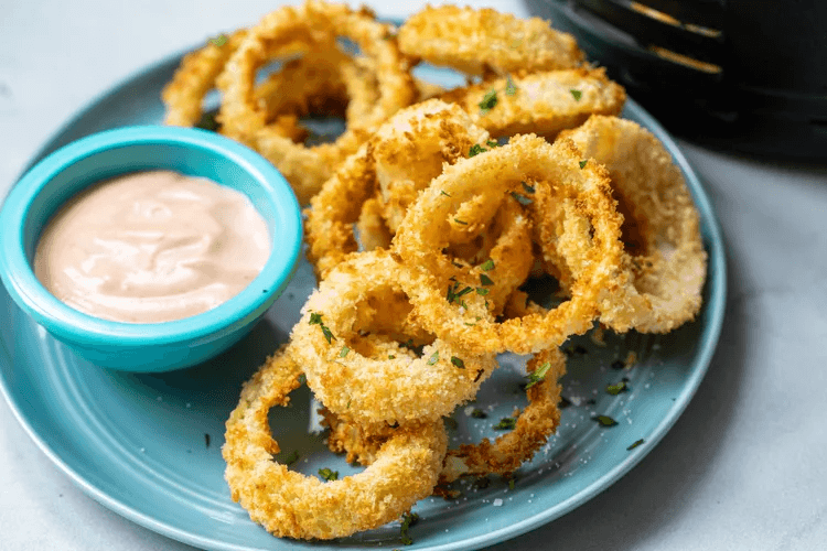 Air fryer onion rings—the perfect guilt-free way to satisfy your salty cravings, crispy on the outside, tender on the inside, and irresistibly delicious in every bite.