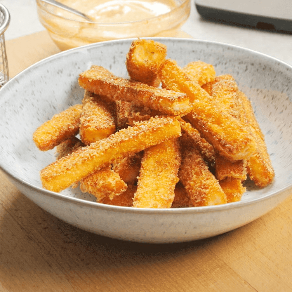 Cut halloumi into thick fries.