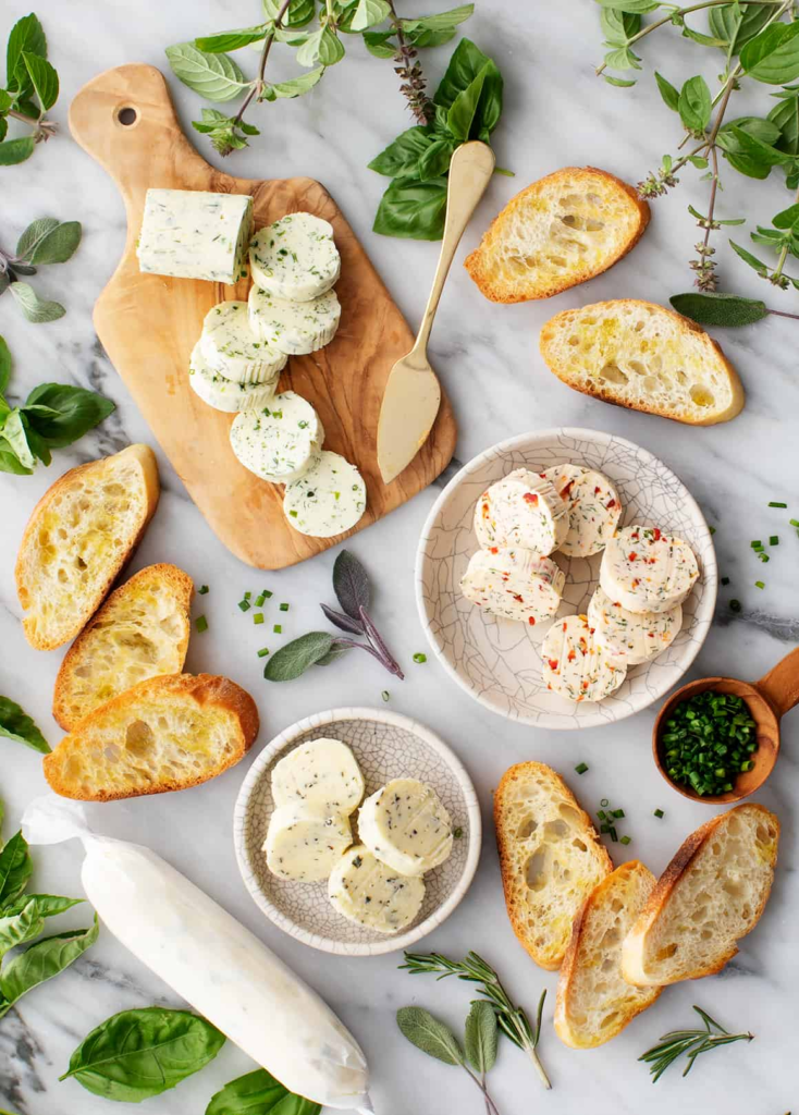 You soften butter, mix in whatever flavors sound interesting, roll it into a log, and refrigerate. Then for the next two weeks every piece of toast, every steak, every ear of corn gets instantly elevated. It’s a 10 minute project with a two week payoff.