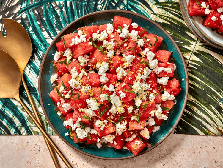 Watermelon feta mint salad: